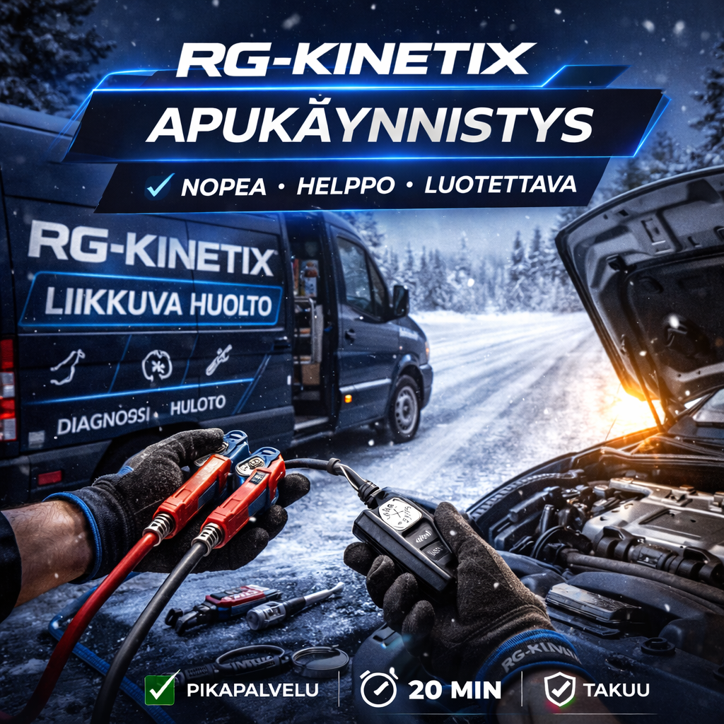 Apukäynnistys (alkaen) 11.2.2026 Kirjoittaja: Micke Kategoria: 49,00 € Apukäynnistys liikkuvana (hinta alkaen). Apukäynnistys (alkaen) quantity Add to cart SKU: RGK-APUK-YNNISTYS-ALKAEN Category: Pikatyöt & hätäpalvelu Tag: apukäynnistys Description Description Sisältää apukäynnistyksen. Käyntimaksu etäisyyden mukaan. Related products Hätäpalvelulisä (alkaen) 39,00 € Add to cart Akkutestaus + latauksen testaus (alkaen) 29,00 € Add to cart Avaimen pariston vaihto (alkaen) 15,00 € Add to cart Polttimon vaihto (alkaen) 19,00 € Add to cart Leave a Reply Cancel replyYour email address will not be published. Required fields are marked *Comment * Name * Email * Website Save my name, email, and website in this browser for the next time I comment. Δ