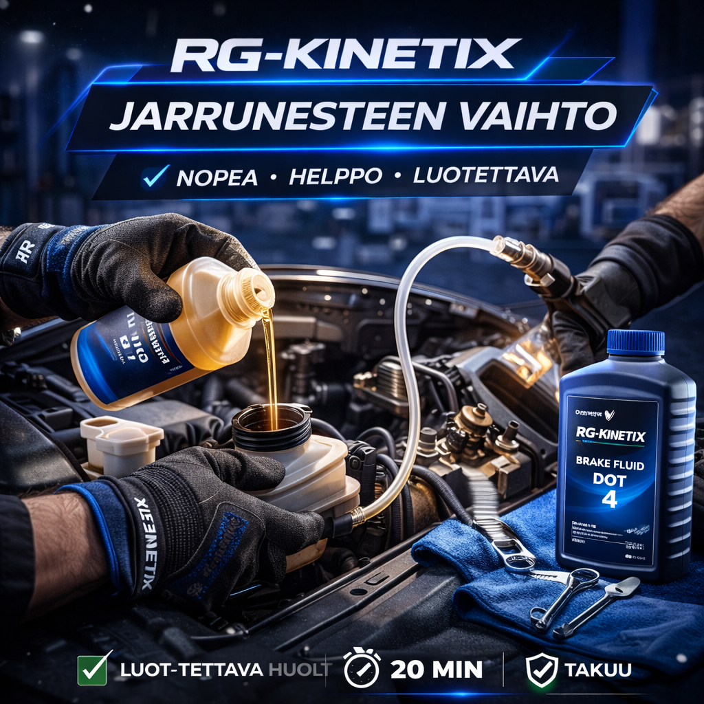 Jarrunesteen vaihto 11.2.2026 Kirjoittaja: Micke Kategoria: 79,00 € Jarrunesteen vaihto (hinta alkaen). Jarrunesteen vaihto quantity Add to cart SKU: RGK-JARRUNESTEEN-VAIHTO Category: Jarrut & alusta Tag: jarruneste Description Description Sisältää työn ja perusmäärän nestettä. Related products Jarrulevyt + palat etu (alkaen) 299,00 € Add to cart Iskunvaimentimien tarkastus (alkaen) 49,00 € Add to cart Alustan tarkastus (alkaen) 49,00 € Add to cart Jarrupalat etu (alkaen) 149,00 € Add to cart Leave a Reply Cancel replyYour email address will not be published. Required fields are marked *Comment * Name * Email * Website Save my name, email, and website in this browser for the next time I comment. Δ